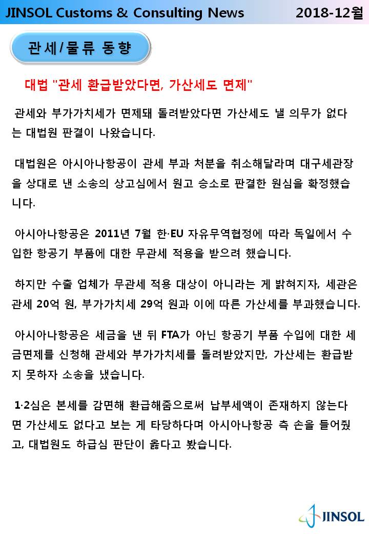 °ü¼¼¹ýÀÎ Áø¼ÖÀº Åë°ü ÄÁ¼³ÆÃ°ú ÇÔ²² FTA, ¹«¿ªÁ¤º¸ Á¦°øµî °¢Á¾ ¼ºñ½º¸¦ Á¦°ø ÇØµå¸®´Â TOTAL ¼ºñ½º ±â¾÷ÀÔ´Ï´Ù.